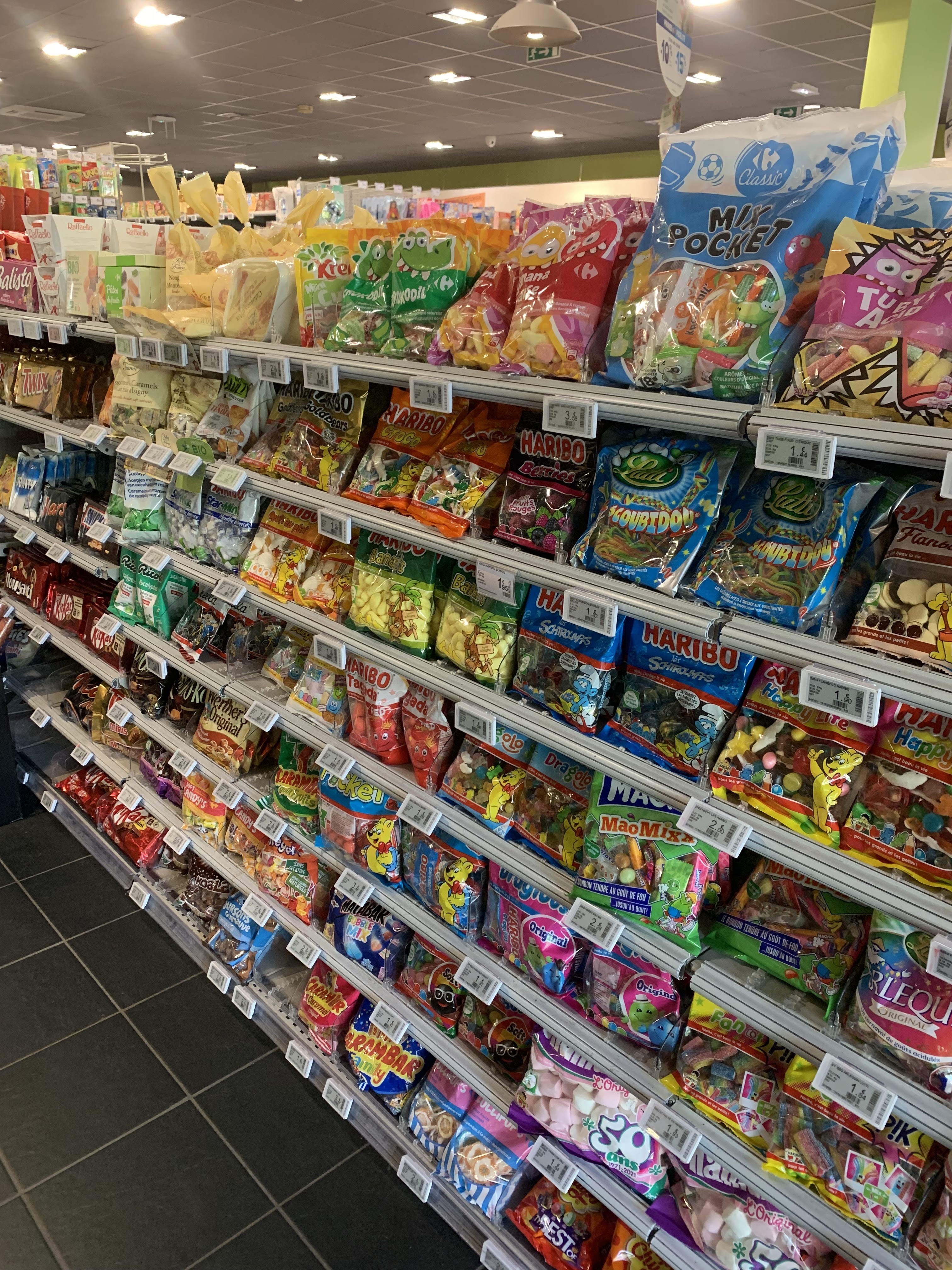 J'ai noté une étoile car on ne peut pas mettre moins. Le magasin et le personnel est sympathique. Par contre en deux ans j'y ai acheté un paquet de pommes de terre toutes molles qui est passé à la poubelle, un paquet de Candy up au chocolat qui avait complètement tourné, amer et inbuvable... (c'était pour mes enfants) Et pour finir aujourd'hui du pain aux cereales bios tout moisi (vert). Cette fois ci j''ai gardé le ticket et je retourne faire une réclamation demain ! Inadmissible pour une grande marque comme Carrefour. De toute ma vie je n' ai jamais vu ça ...