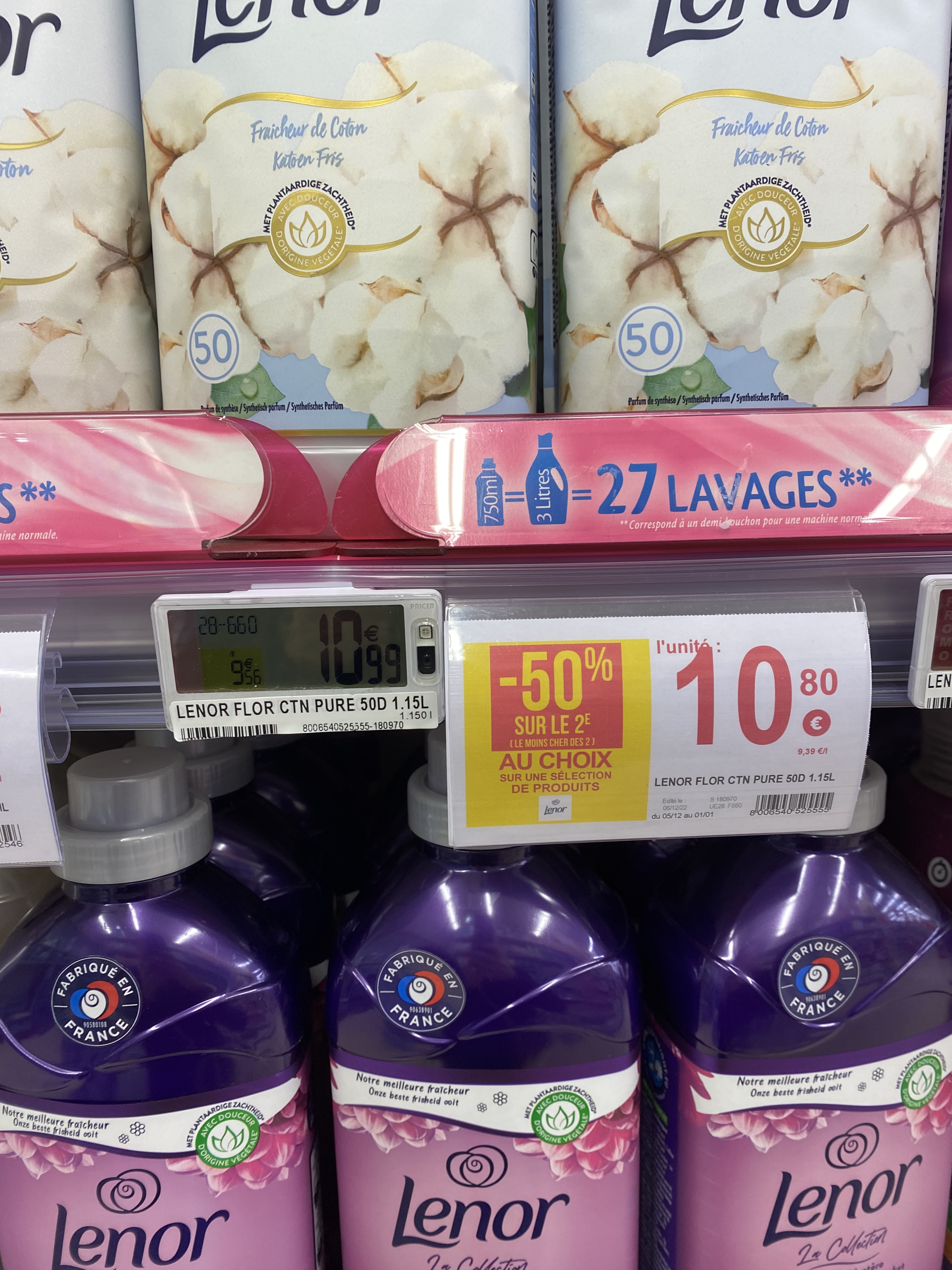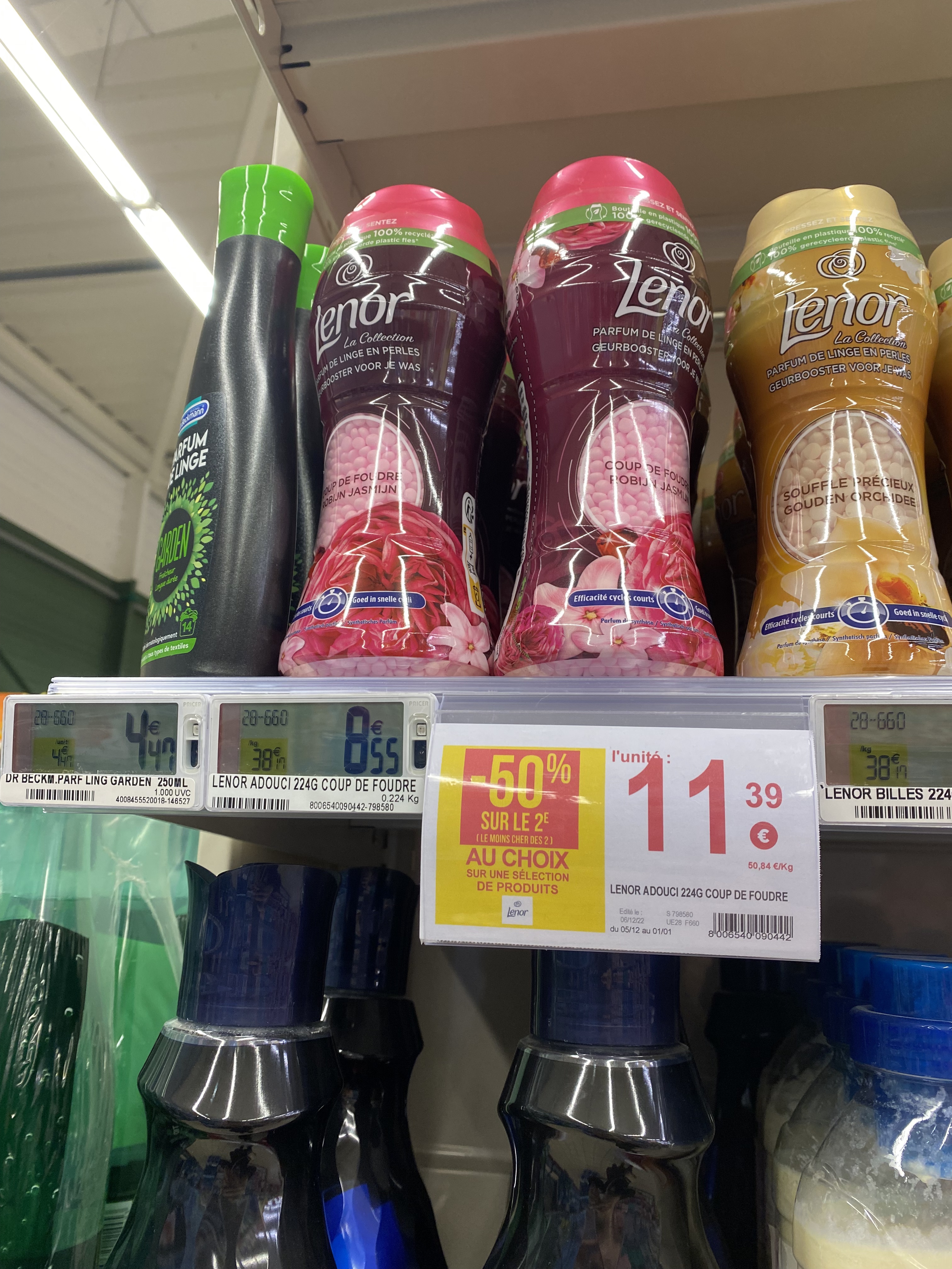 Je suis déjà venu une fois dans ce magasin pour le goûter d’anniversaire de ma fille. Il y avait un problème de prix. La promo coûtait plus cher que le prix de base. Un problème d’affichage m’avait-on dit .. aujourd’hui, je viens faire mon plein de courses et je suis dès le départ choquée du prix d’un shampoing à près de 8€ en moyenne ou d’un démaquillant qui vaut le même prix. Je laisse puisque cela me parait un peu trop élevé par rapport à la concurrence et passe aux courses suivantes. Rayon lessive et adoucissant. Le prix des lessives est plus cher que chez le concurrent à moins de -5kms donc je laisse encore et là devant les adoucissants je palis ! Les prix sont gonflés avant la promo . Ce n’est sans doute pas le seul magasin à le faire mais 3€ de plus 😳 . On fait le petit calcul qui fait sourire ma fille. L’adoucissant que je prends habituellement me revenait à 17€ les 2 en promo ( dont 1 a 50%…) contre 17€ sans promotion ! Je n’apprécie pas vraiment qu’on se moque de nous en tant que consommateur sans prendre la peine de changer le prix de base. J’ai l’impression de me faire arnaquer . Un membre du personnel est venu après que je l’ai appelé, constater le problème et a retiré les promos . Au moins les clients suivants ne gagneront rien mais ne perdront rien non plus .