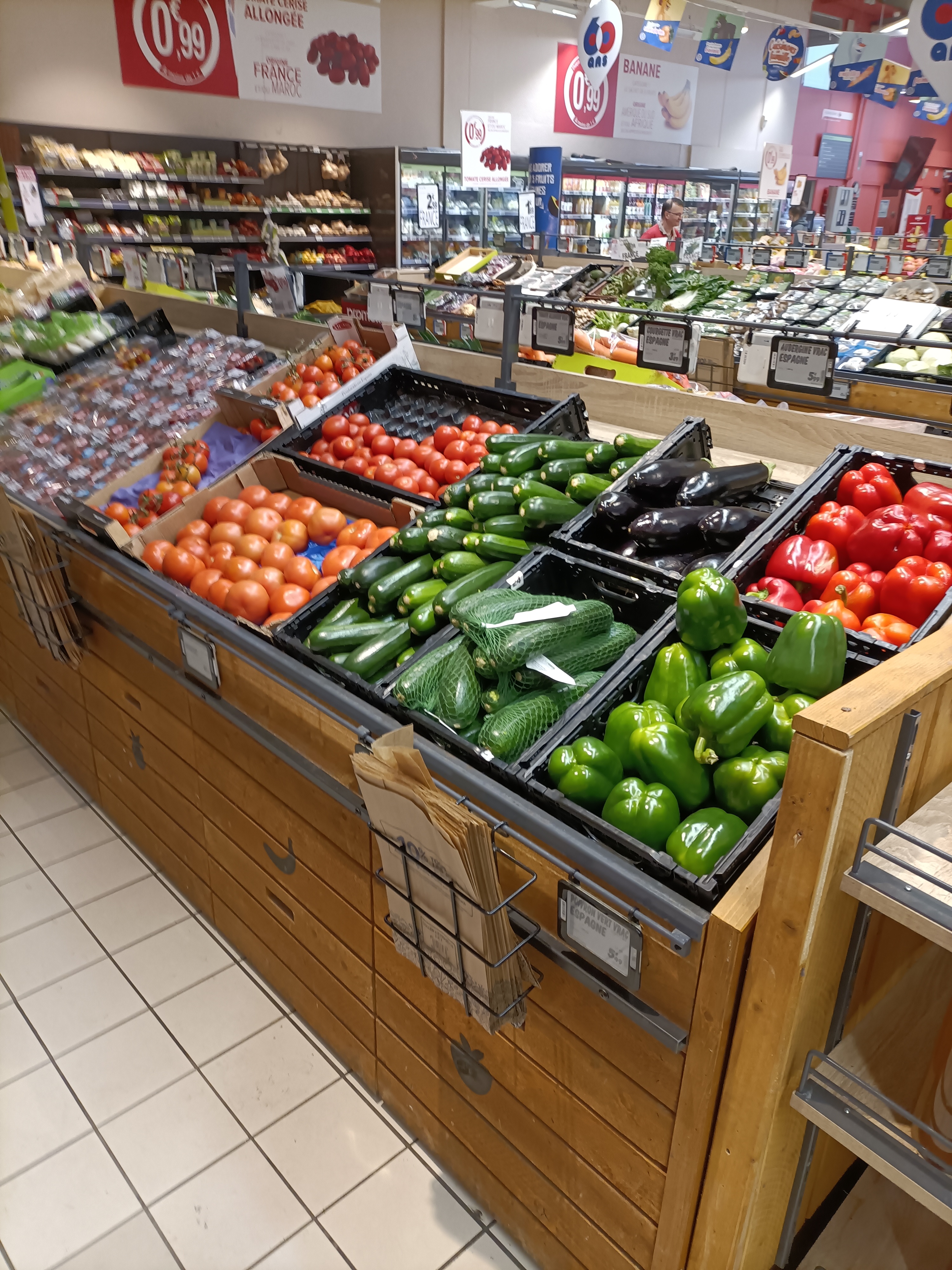L’entrée du magasin à changer et désormais nous avons les légumes et les fruits avec des arrivages journaliers, et les allées faites sont très agréable