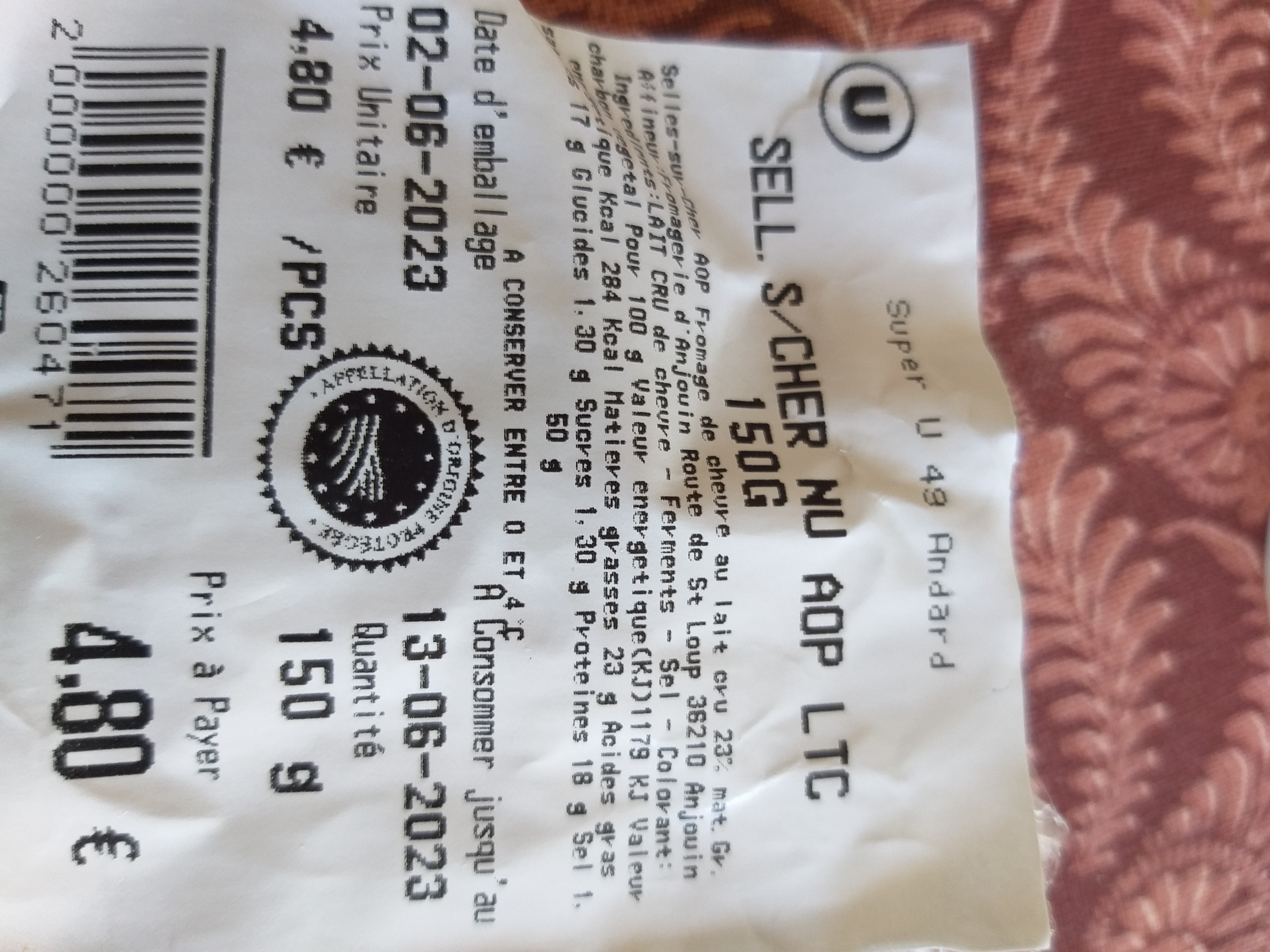 J'ai acheté un fromage à la pièce. Dommage que le prix au kg ne figure pas ????.