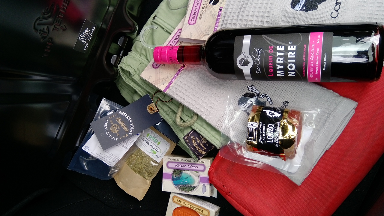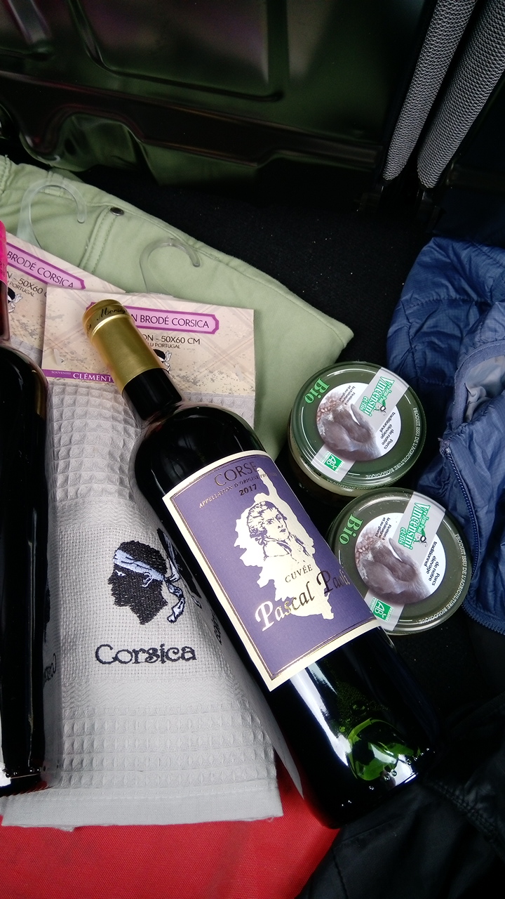 J ai fait le plein de canistreli, confiture d barbouze, charcuterie, fromage et vin. Tous ces bons produits qu on ne retrouvent pas sur le continent.